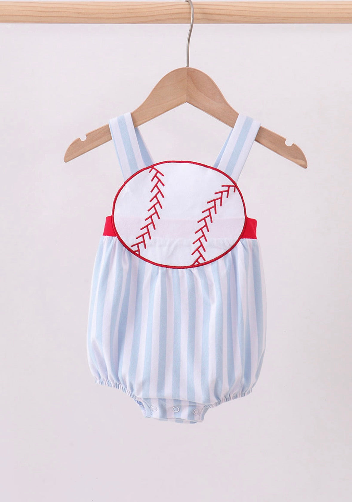 Crafted for young athletes, this bubble features a striking baseball applique in classic boy blue. The soft, breathable fabric moves with active play while the appliqué detail adds sporty charm. Perfect for casual wear or game day, this piece combines comfort with playful style. Ideal for boys who love baseball and want to show their passion off the field.