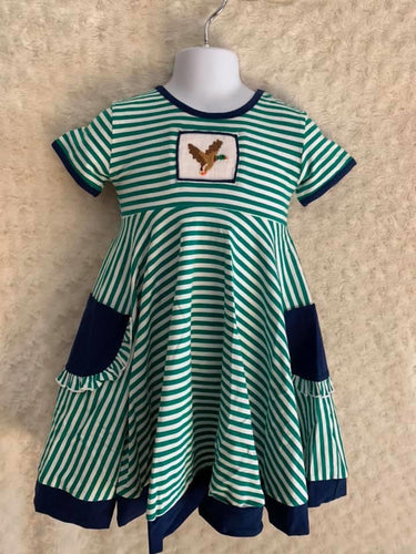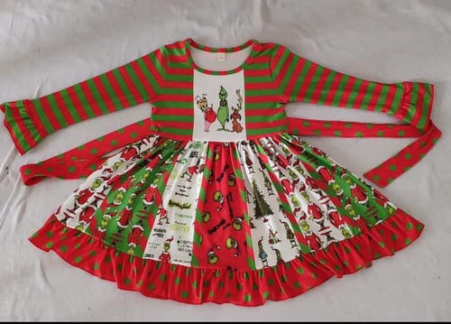 Green christmas tree applique velvet dress